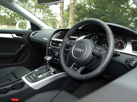 全新A5 Sportback改配電子動力轉向系統 (Electromechanical Power Steering),由電動馬達提供轉向動力,再配合多項改善油耗的設備,包括:智慧型溫度管理系統 (Thermal Management)、能源再生系統 (Energy Recuperation) 及引擎自動熄匙系統 (Start-stop system),令平均油耗降低11%。 動力依然是2公升直4渦輪增壓引擎,馬力和扭力並無提升,0-100km/h加速依然是6.6秒,不過耗油量則降低了,由7.5公升可行100公里,改善到只需7公升行100公里,而碳排量也由174g降低至每公里159g,以現時油價高企不下的情況而言,A5 Sportback的慳油表現的確非常實惠吸引,可惜是車價也突破了50萬的界限,上升至港幣554,500元。 [caption id="attachment_33907" align="alignnone" width="580"] 新車前座椅設計更為桶形,加強了肩膀和腰部兩側的包托度。[/caption] 德國車才有的質感 [caption id="attachment_33908" align="alignright" width="300"] 後座終於可乘坐三人。[/caption] [caption id="attachment_33914" ]