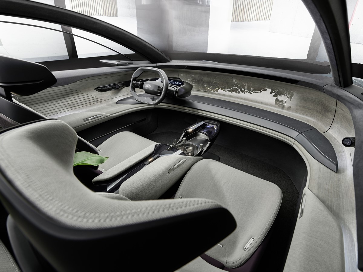 未來汽車,就好似模特兒在fashion show演繹嘅最新時裝一樣,以概念及物料吸引目光。而外形似一架GT跑車嘅奧迪 Grandsphere 概念車,其實係一架長達5.35 米長嘅長陣轎車,在全自動駕駛模式下,軚盤及操控腳踏會縮入儀表板及地台隱藏間隔中,令乘客嘅伸展空間更加自由自在,換言之,Grandsphere 係一架專為討好乘客而設計嘅豪華長陣轎車。