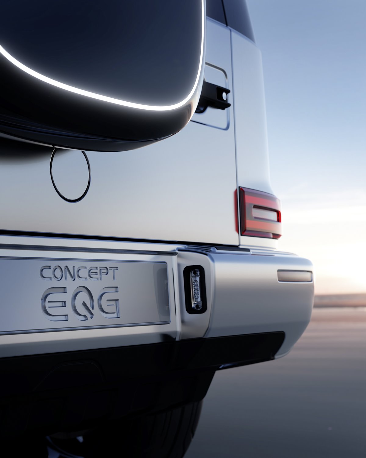 好彩經過EQ化嘅外形,仲保留住G-Wagen嘅經典線條,不過掛在車尾嘅已經唔係猛男式嘅士啤呔,而係裝載充電線嘅儲物箱,而車頂就有個好Man嘅機甲化大 G字樣,為電動化嘅EQG營造番剛強嘅味道。