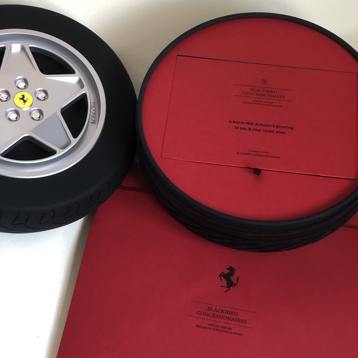 法拉利香港代理今年嘅中秋月餅禮物,係以製作精美嘅經典五角星法拉輪胎包裝,實在令人驚喜!