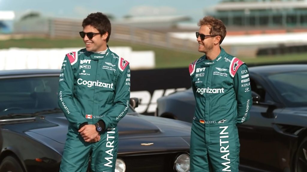 由 Aston Martin Cognizant F1 Team 車手 Sebastian Vettel 及 Lance Stroll ,在賽道試吓在最新007電影再度登場嘅Aston Martin DB5 跑車,原來F1車手都未必百分百好似特技車手係咁甩尾!