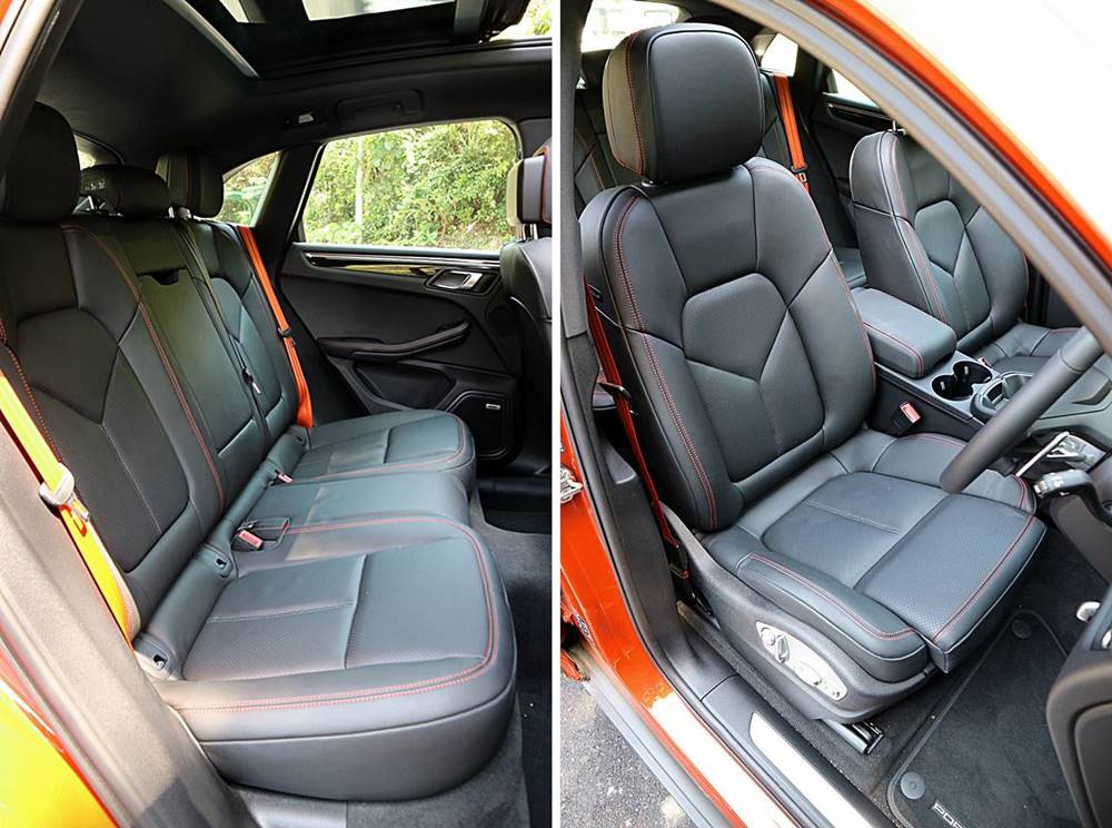 全長4,726mm,軸距2,807mm的Macan,車廂空間雖然不是非常寬敞,就算是後座因為稍為流線形的車身而令頭頂空間壓縮了,但總算是有相當合理而舒適的乘坐空間,唯一會造成不方便的是後排凸起的中軸,坐滿三位後座乘客時,中央的乘客就有欠舒適了。